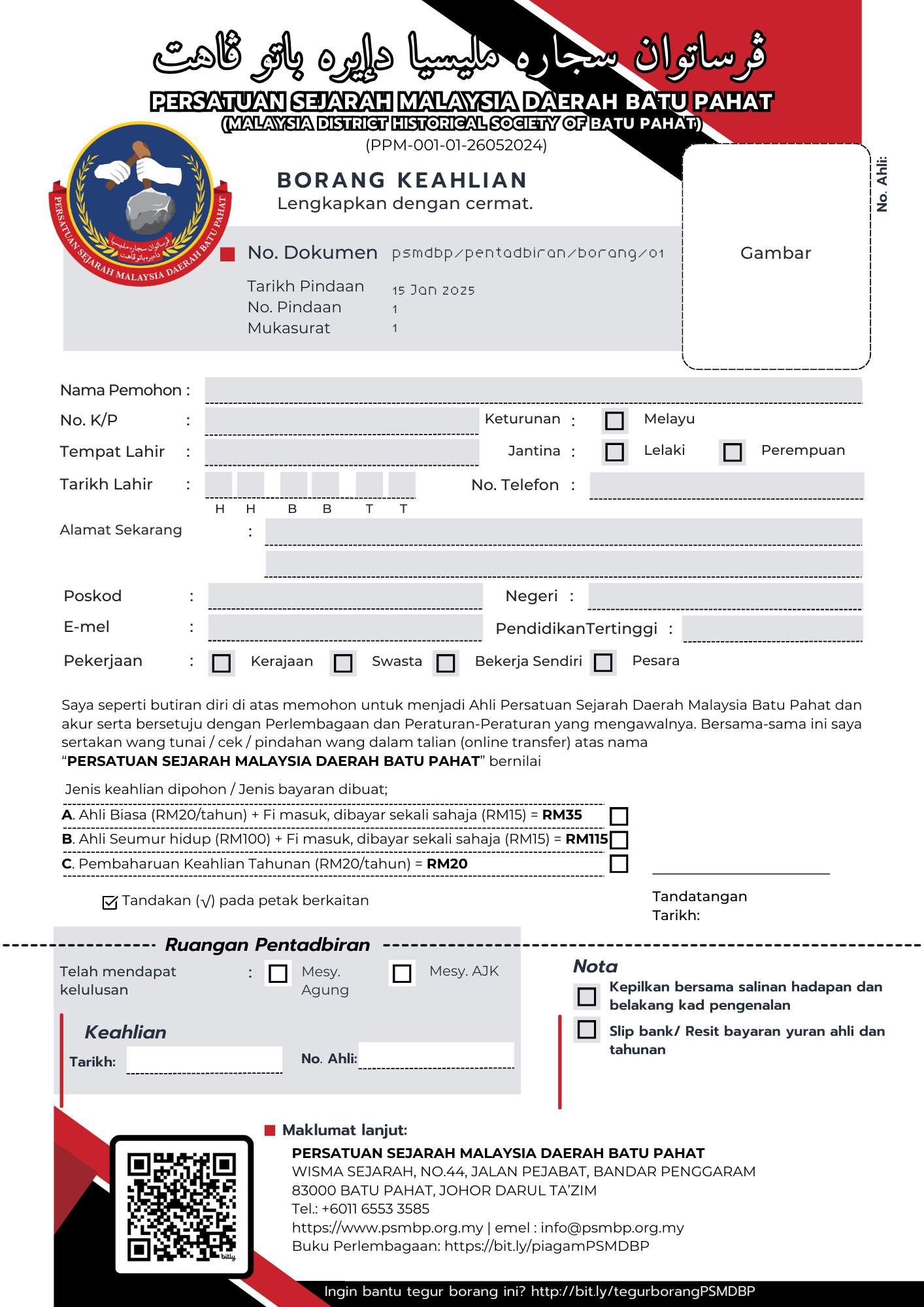 Mereka yang berminat untuk mendaftar sebagai ahli, boleh isi borang terlebih dahulu. Pembayaran boleh dibuat sepanjang bulan Januari 2025.